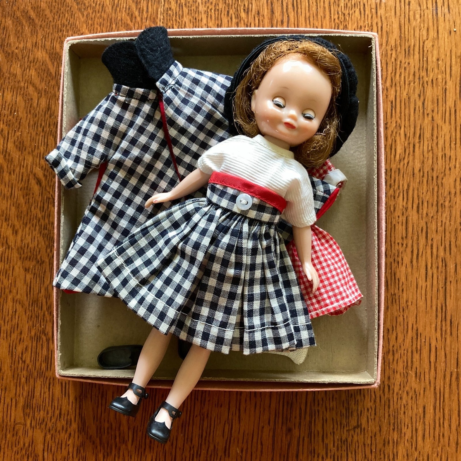 Betsy McCall 8" Fashion Doll With Red Gingham Dress and Black Gingham Outfit VTG