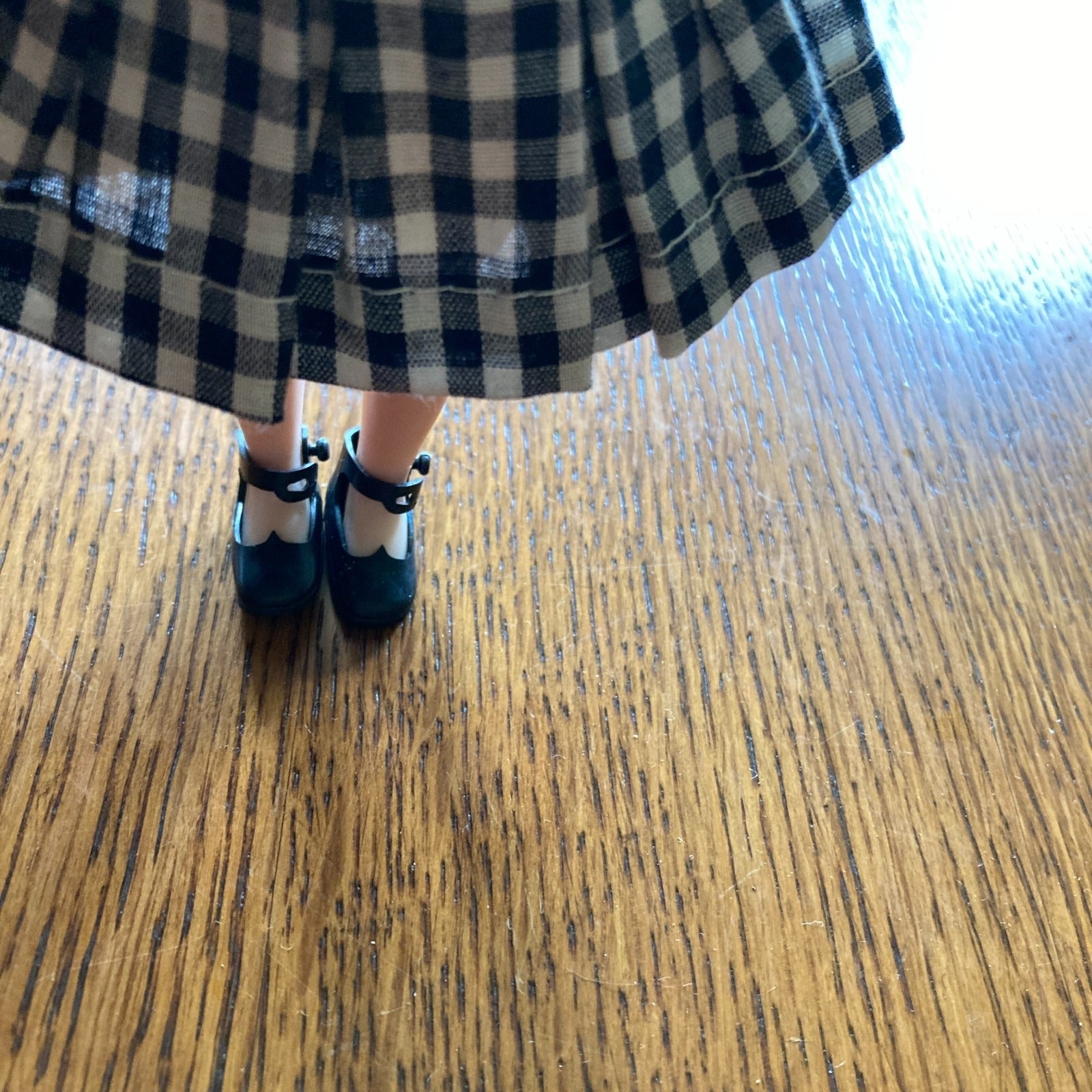 Black gingham outfit - excellent condition - has a dress, tam hat, cape jacket with high collar